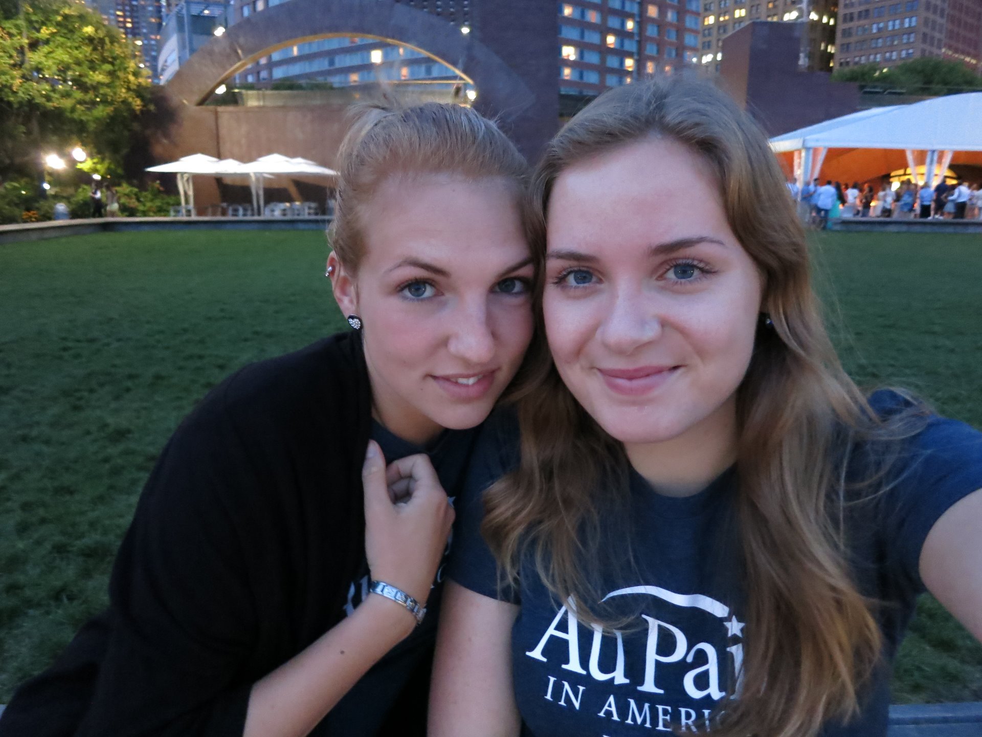 Für große Verabschiedungen war natürlich trotzdem keine Zeit mehr. Und so rannten wir alle zu unserem Flieger, der natürlich - und das nicht nur wegen uns - Verspätung hatte.. Eh wir also endlich in der Luft waren, war es 17:30Uhr. Trotz eines früheren Fluges später dran als ursprünglich geplant. Das ist 'ne Leistung, lieber Flughafen! Und als ob ich nicht schon genervt genug gewesen wäre (der Satz klingt echt komisch...), kam dann noch dazu, dass man Chrissi und mich jeweils ans andere Ende des Flugzeuges gesetzt hat, obwohl wir extra beide gesagt haben, dass wir gern nebeneinander sitzen möchten, weil Chrissi noch nie geflogen ist. Aber gut, es war ja vorerst nur eine Stunde bis London. Der Flug war auch eigentlich ganz okay. 18:00uhr - In London angekommen ging es im Sprinttempo zum nächsten Gate. Wir hatten knapp eine Stunde bis zum Departure Zeit, mussten aber ans andere Ende des Flughafens. Auf uns warteten also direkt an der FfM-London Maschine 2 mehr oder weniger nette Damen der Flugsicherung, die uns zum Anschlussflieger gejagt haben. Man hätte auch normal laufen können, aber wir schienen wohl eine extra Trainingseinheit nötig zu haben. Vor allem nach der Sicherheitskontrolle war das Laufen eine Meisterleistung. Ich hatte nämlich keine Zeit meinen Laptop etc wieder in den Rucksack zu packen, bevor es weiterging. Ich musste sofort weiter. So viele Hände hatte ich gar nicht, wie ich dort gebraucht hätte! Aber das Gute an der Sache war: Wir saßen tatsächlich alle pünktlich 19:00uhr zum Abflug bereit im Flugzeug. Die Leute waren sogar so nett die Plätze mit uns zu tauschen, sodass ich neben Magda und Chrissi sitzen konnte. Zu freundlich, diese Amerikaner. Kaum zu glauben, nach diesem Horrortrip haben wir tatsächlich die Maschine nach New York geschafft, die zwar wieder mal zu spät dran war, aber immerhin nicht wegen uns. "Keine Nacht am Flughafen!!" dachte ich... hätte ich das mal lieber nicht gedacht... Dieser Flug war mit Abstand der angenehmste Flug meines Lebens. Gegen 20:20Uhr deutscher Zeit sind wir wieder in den Himmel aufgestiegen und konnten unsere Zeit nun mit Disneyfilmen im Boardprogramm verbringen. Dann gab es Essen (auf Langstreckenflügen echt nicht schlecht) und letztendlich waren wir nach 2 Stunden alle so tot, dass wir beschlossen haben zu schlafen. Und genau das habe ich dann auch den Rest des 7-stündigen Fluges getan. Augen zu und durch. Gegen 22:00uhr Ortszeit, also 4:00uhr morgens in Deutschland, sollten wir New York City erreichen. Kurz vor Boston über der Küste des Atlantik wurde ich langsam wieder wach. Mein erster Blick fiel auf die Uhr und dann aus dem Fenster. Und was wir dort sahen war unglaublich. Wir flogen direkt an einer gigantischen Gewitterfront vorbei. Und weil es so dunkel war - ja, nachts ist es dunkel - konnte man jeden Blitz wunderbar sehen. Es war absolut faszinierend, irgendwie wie Feuerwerk. Und dann ging es auch schon runter.. Landeanflug auf den JFK Airport New York City! 22:10uhr - Kaum zu glauben, dass wir schon da waren. Es ging mal wieder alles wahnsinnig schnell. Nachdem ich meine Fingerabdrücke der NSA überlassen hatte, konnte ich nun endlich meinen pinken Koffer wieder in Empfang nehmen. Nur ging es leider nicht bei allen so schnell. Nach über 1,5h am Kofferband standen immernoch 2 unserer Mädels ohne Koffer da. Wir anderen wurden also schon mal in die Busse gekarrt, während sich ein Betreuer um die beiden kümmerte. Und da saßen wir nun, alle totmüde und geschafft vom Flug. Wir wollten einfach nur noch ins Bett. Es war mittlerweile Mitternacht - 6:00uhr morgens in Deutschland - und eigentlich sollten wir um die Zeit schon im Hotel sein, denn 6:30uhr klingelte ja schon wieder der Wecker zum Childcare Training. Und hier kann ich mein "Keine Nacht am Flughafen" wieder aufgreifen... Es vergingen 2 weitere Stunden, die wir im Bus versuchen mussten zu schlafen. Aber man konnte kaum noch ein Auge zu bekommen. 2:00uhr konnten wir dann endlich in Richtung Hotel aufbrechen. Zwar hatten die beiden Mädels immernoch keinen Koffer, aber die Verlustmeldung war gemacht und wir durften fahren. Dann ging es also los, eine Stunde trennte uns noch von unserem Hotel, dem Double Tree by Hilton in Tarrytown. 3:15uhr - We made it to the hotel! So glücklich war ich in meinem ganzen Leben noch nicht. Wir waren eeendlich da. Ich war nun mittlerweile fast 24 Stunden unterwegs, hatte kaum geschlafen und wollte einfach nur noch ins Bett (und unter die Dusche).. Der Check In ging zum Glück recht schnell, sodass Valeria und ich unser Zimmer schon nach 15min in Beschlag nehmen konnten. ICH LIEBE DUSCHEN! - vor allem nach so einem Tag. Auch wenn ich 3 dicke Kreuze gemacht habe, als wir endlich in unseren Betten lagen...ich war selten so aggressiv! Die konnten doch nicht allen ernstes von uns verlangen, dass wir nach so einer Anreise und 2 Stunden Schlaf wieder um halb 7 aufstehen und uns 8 Stunden Unterricht antun, um danach noch bis 22:00uhr zur Stadtrundfahrt durch New York City zu fahren und am Ende wahrscheinlich irgendwo zwischendrin einzuschlafen...!?! ..'ne Macke haben die! 4:30uhr - so hieß es nun also: Gute Nacht Welt, in 2 Stunden klingelt der Wecker..!