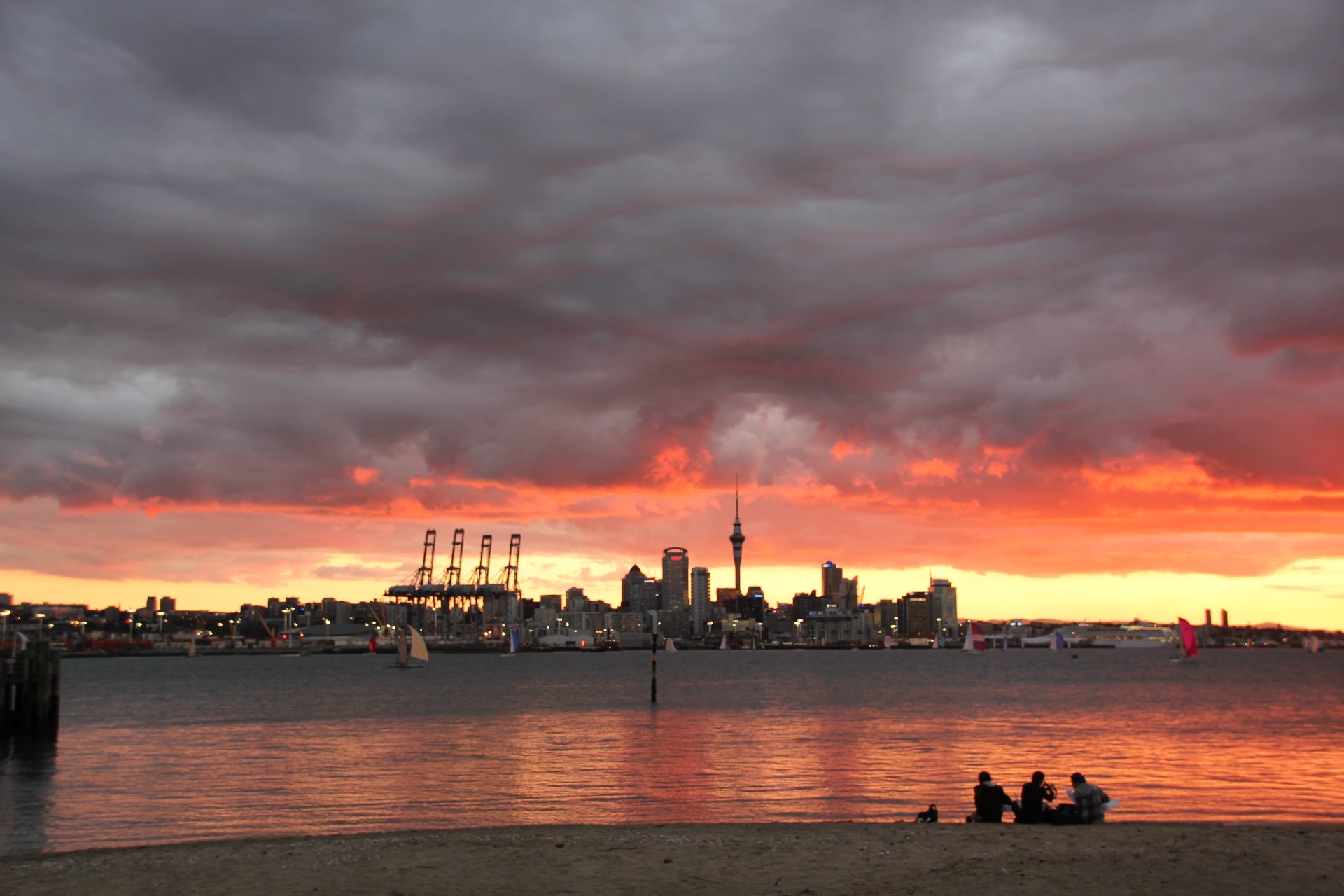 Magische Sonnenuntergänge gibt es am Strand von Devonport zu bestaunen. Der Stadtteil liegt auf einer Halbinsel gegenüber der Skyline Aucklands und ist problemlos mehrmals täglich mit der Fähre oder mit dem Bus zu erreichen.