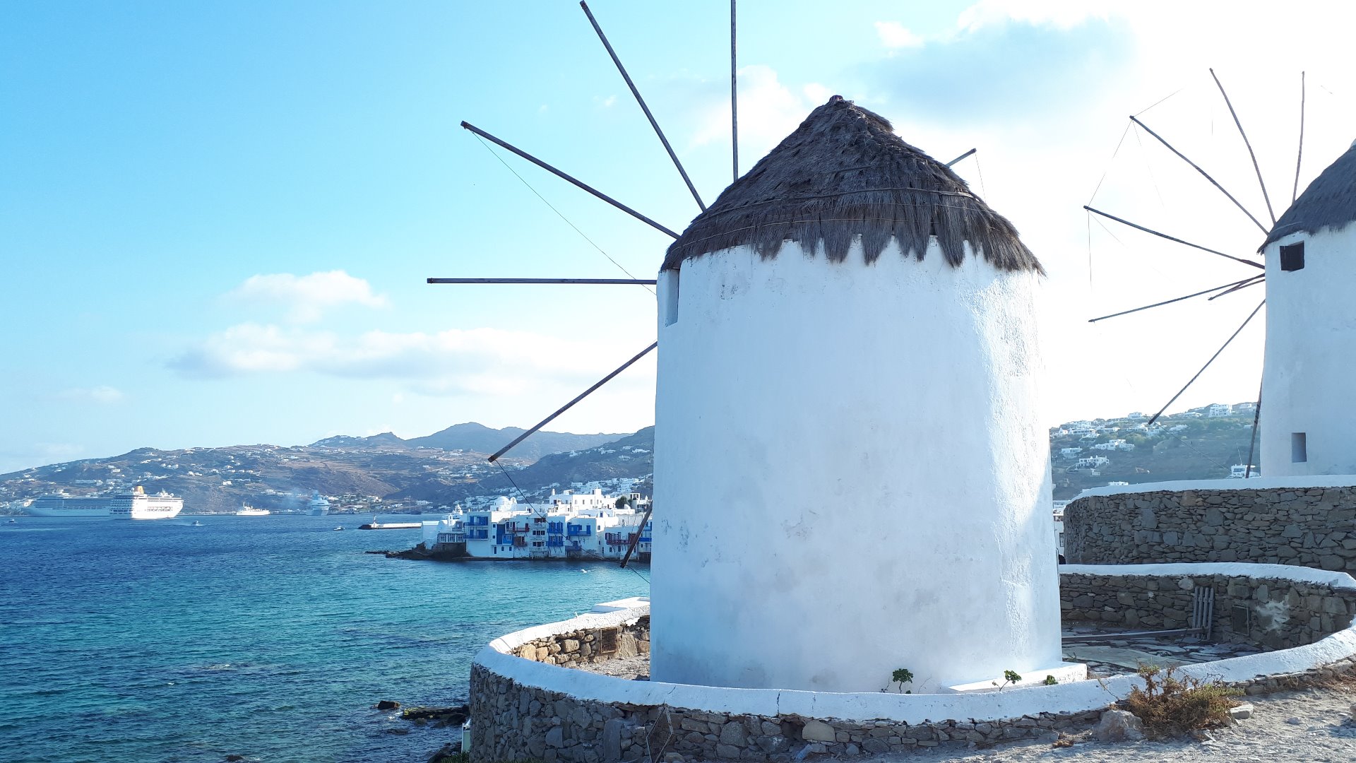 Der Dienstag begann mit Sonnenaufgang und unzähligen krähenden Hähnen. Ich hatte mir ein straffes Programm gesetzt - heute wollte ich die wichtigsten Ecken der Insel ablaufen. Sightseeing pur, denn schon am nächsten Tag wollte ich die Insel verlassen. Noch bevor Mykonos zum Leben erwachte, lief ich 8km von Ost nach West, hoch und runter, vorbei an Kato Mills, dem Old Port, Little Venice und verlief mich ein paar hundert mal in den wunderschönen weißen Gassen der Altstadt.