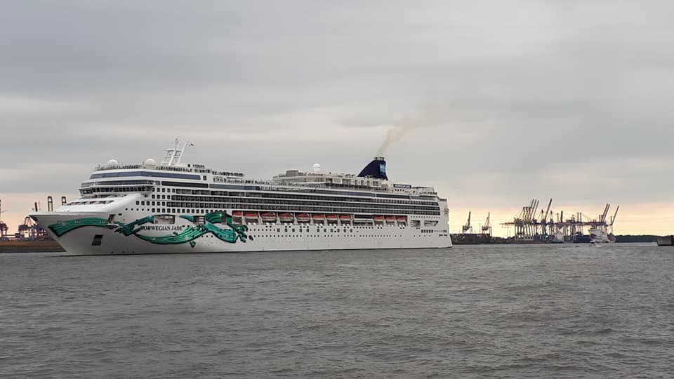 Sonntag, 8:30 Uhr in Hamburg - Charly ist unterwegs nach Altona. Die zweite Besichtigung in diesem Sommer beginnt mit strahlendem Sonnenschein und - wie sich das gehört - einem Frühstück von Dunkin Donuts. Heute liegt die Jade der Reederei Norwegian Cruise Line im Hamburger Hafen und begrüßt uns in farbenfroher Optik.