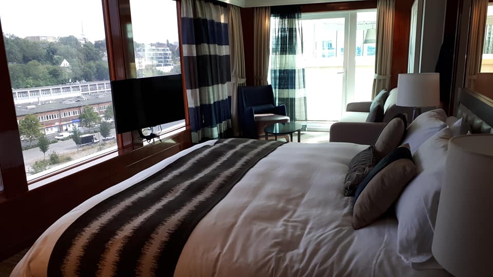 Auch die Besichtigung der Kabinen begann mit der Königsklasse - noch vor den Innen-, Außen- und Balkonkabinen erhaschten wir einen kurzen Blick in die Garden Suite. Wer Luxus und viel Platz mag, der fühlt sich hier definitiv pudelwohl. Der gesamte Wohnbereich ist von abgedunkeltem Glas umgeben und bietet einen herrlichen Blick über den Poolbereich. Aber auch die restlichen Kabinen sind gemütlich und in Anbetracht des Alters des Schiffes vergleichsweise modern gestaltet. Die eingeschränkte Bewegungsfreiheit begrüßte mich auch hier wieder mit einem strahlenden Lächeln und bestärkte mich erneut in meiner Sympathie für Balkonkabinen.