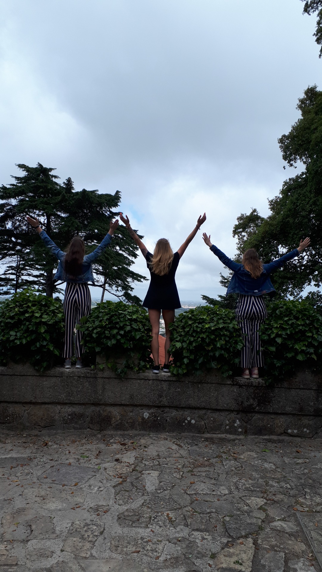 Unser Ausflug begann - wie immer - in aller Herrgottsfrühe mit einer einstündigen Busfahrt zum Palácio Nacional de Sintra. Dort angekommen ließ sich schon erahnen, dass es wohl ein recht farbenfroher Tag werden würde. Zwischen dichtem Wald waren die Hügel überall mit kleinen bunten Häuschen bebaut. Man fühlte sich irgendwie direkt wohl.
